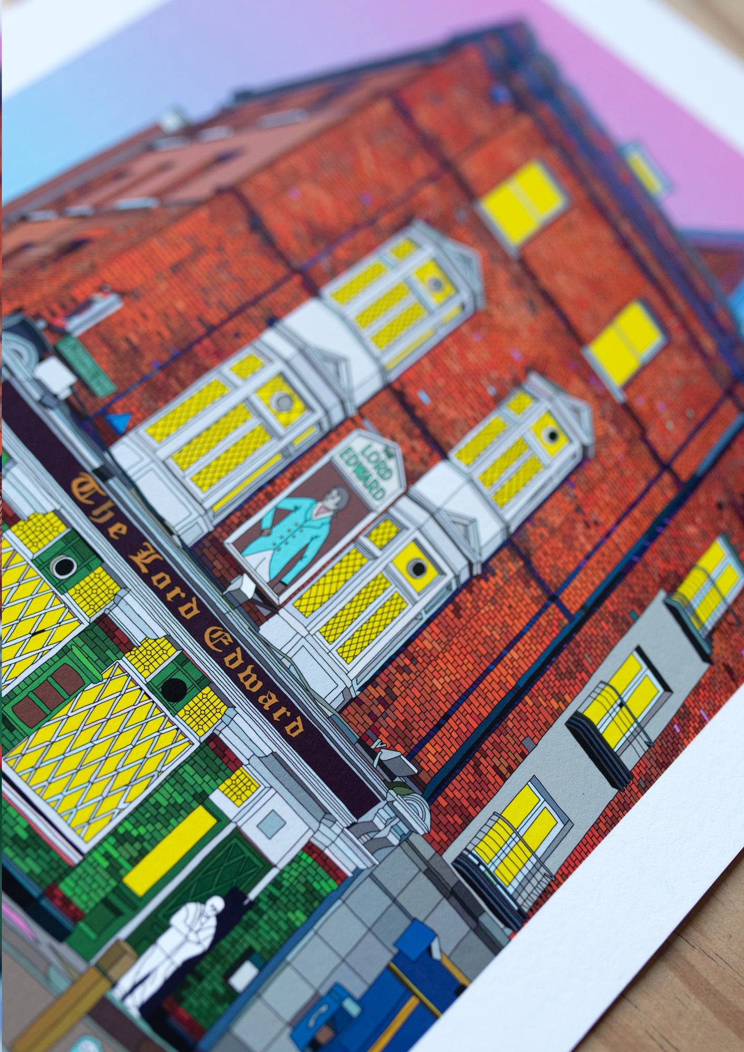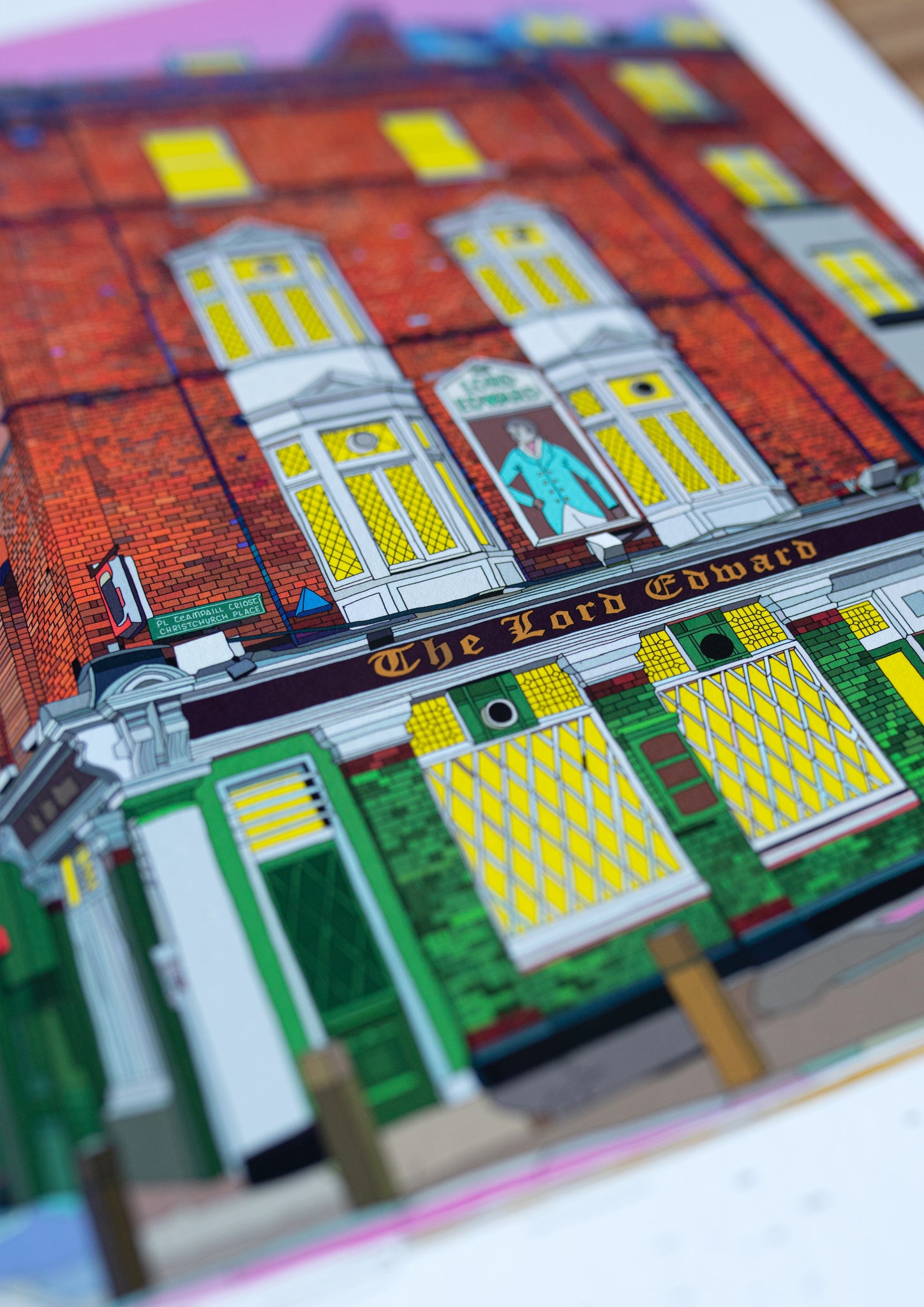 This print is hand illustrated, printed, packed and shipped by me from my studio in Dublin 7. This is a limited edition giclee print on high quality acid-free paper using premium canon inks. The pint comes on a hand pained, Neutral pH backing board wrapped in a Archival and Crystal Clear sealed bag for long or short term protection